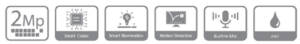 1080p (1920 × 1080); 1.3M (1280 × 960); 720p (1280 × 720); D1 (704 × 576/704 × 480); VGA (640 × 480); CIF (352 × 288/352 × 240)